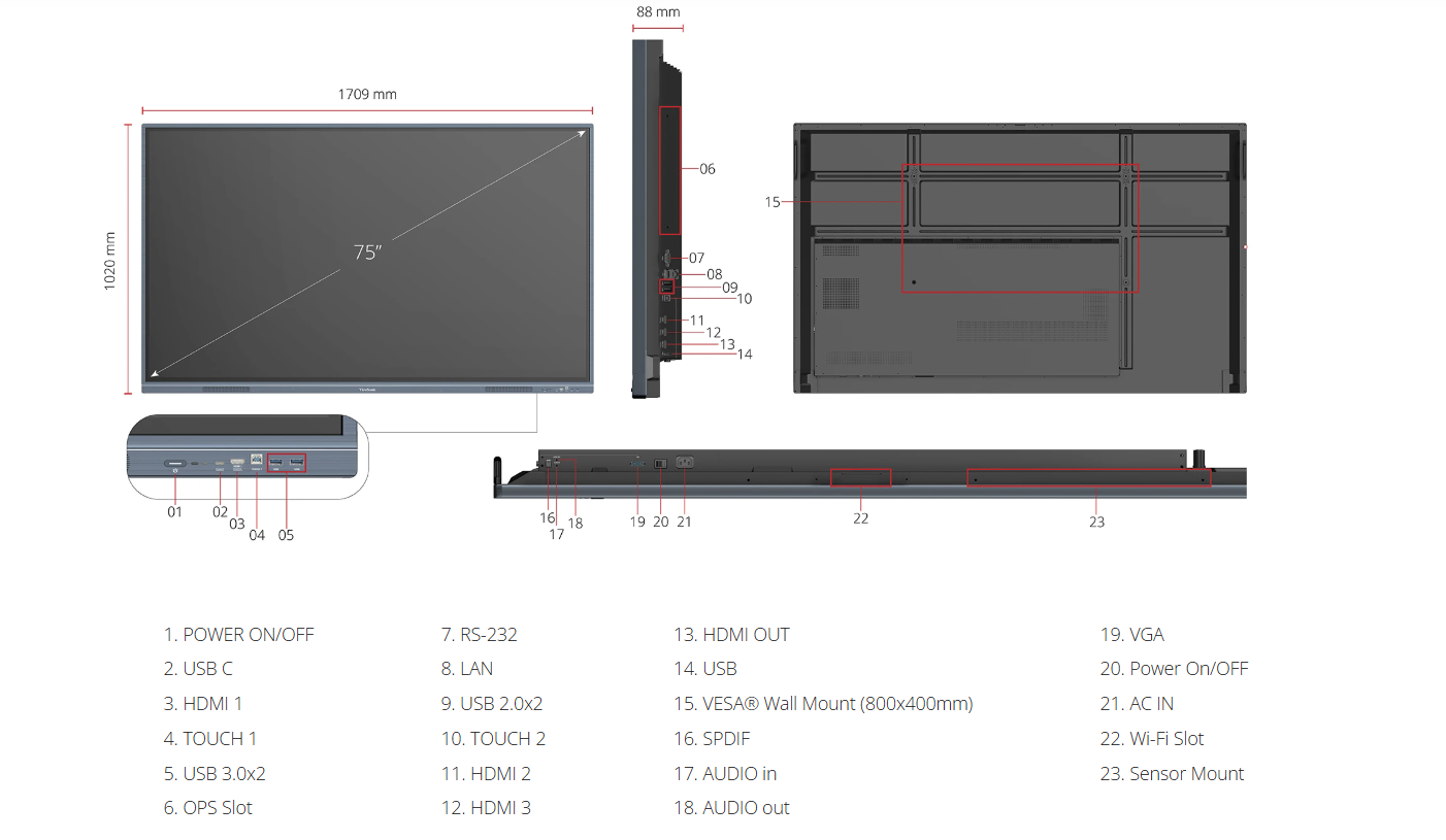 Powerful built-in front-facing speakers and a USB-C port sort out for a complete and convenient multimedia experience. The ViewBoard IFP33 Series is preinstalled with myViewBoard to offer advanced lesson delivery options for teachers and powerful device management tools for administrators.