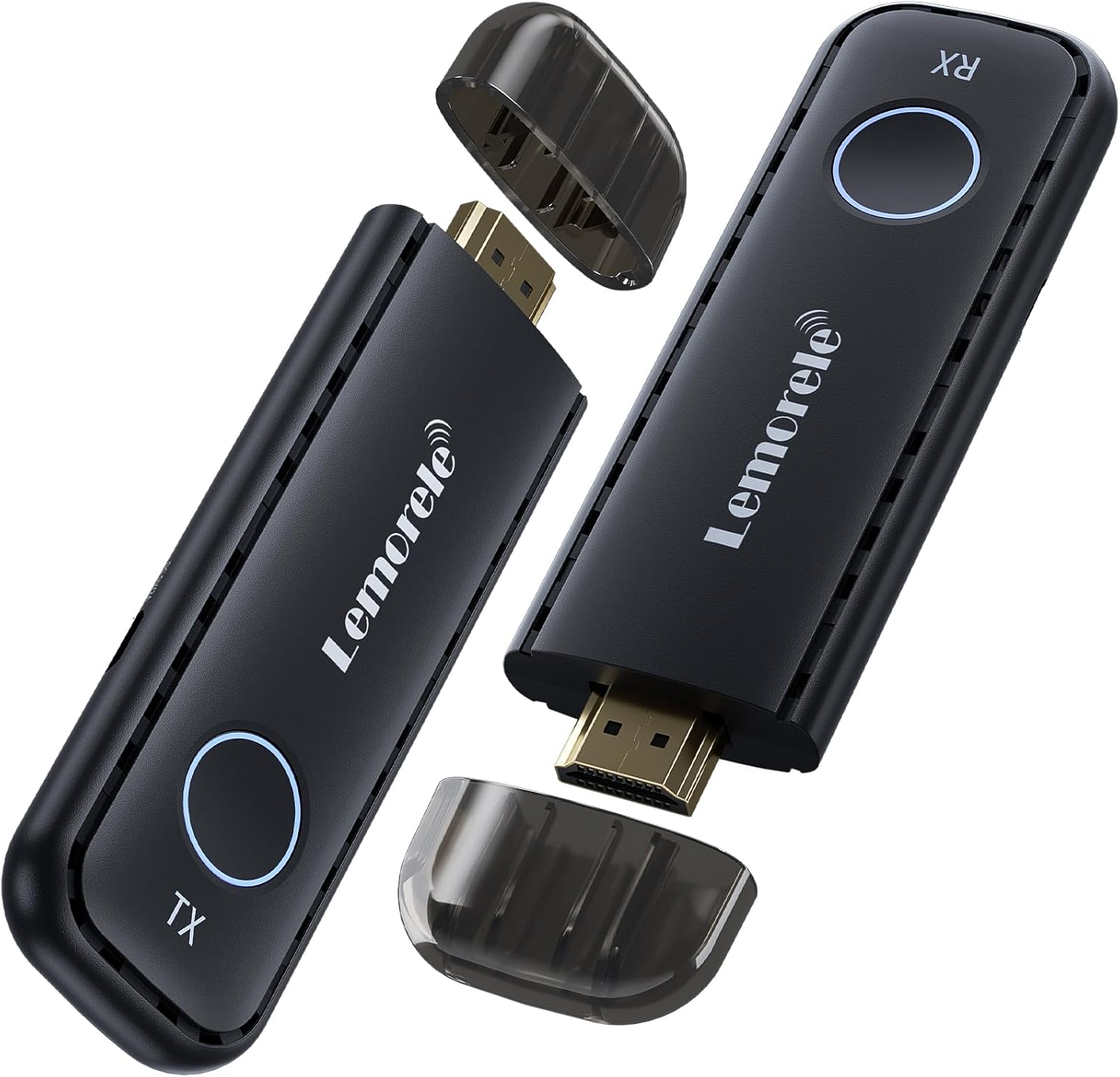 - Compact and Convenient, Plug and Play: The Lemorele wireless HDMI transmitter and receiver kit features a compact, lightweight design that requires no software installation, offering true plug-and-play convenience. Whether in the office, home theater, classroom, or while traveling, it easily meets your needs. Simply plug the wireless transmitter into your computer, set-top box, or Blu-ray player, and connect the receiver to your TV, monitor, or projector to enjoy wireless streaming. Say goodbye to tangled cables and create a clean, efficient work or entertainment space